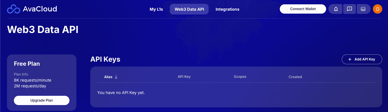 In order to utilize your accounts rate limits, you will need to make API requests with an API key. You can generate API Keys from the AvaCloud portal.