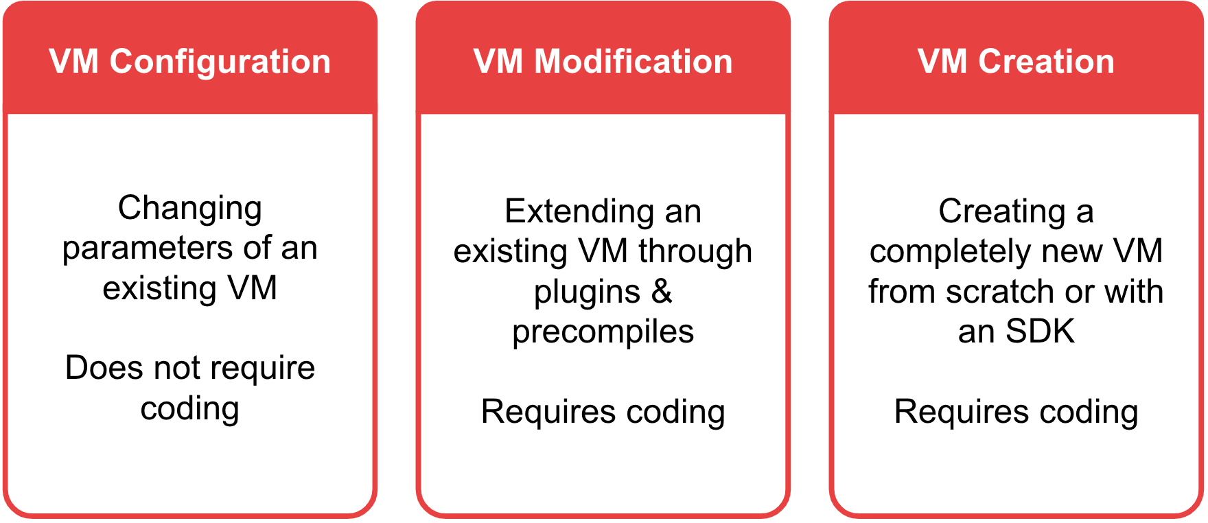 Depending on a builder's needs, Avalanche allows for different VM customizations: